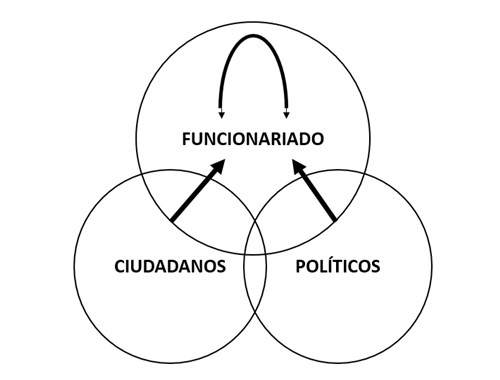 1. Sobre los diez pecados capitales Filósofos de la burocracia como Carlos Marx, Augusto Compte y el sociólogo probablemente más estudiado, Max Weber, han vertido esfuerzos en sus críticas y propuestas sobre la administración y el gobierno de los Estados. Nuestro propósito es desgranar el análisis que de Del Valle y Chaves presentan en una obra más reciente y alejada de grandes sistemas; los autores, en Los diez pecados capitales de los empleados públicos ofrecen su perspectiva de la naturaleza y los cambios en las administraciones públicas, esta consiste en cómo es el trabajo cotidiano del funcionariado, qué clase de personal es y cómo es la relación con el resto de grupos, que son los políticos, de un lado y la ciudadanía, de otro. Con este libro se trata de perfilar, el "buen" funcionariado, la "buena" gente política y la "buena" ciudadanía. Los pecados capitales son ampliados hasta diez en homenaje al ensayista Fernando Diaz-Plaja. Esta primera observación tiene la finalidad de justificar el orden formal de toda la obra, si el ensayista había tratado en 1972 las costumbres más castizas de la cultura española, resulta interesante hacer lo propio en 2016, año en que Del Valle y Chaves escriben. El texto contiene diversas anécdotas y referencias a refranes, el lenguaje se aleja de retóricas precisamente haciendo gala de algo que más adelante los autores señalarán y es que, en teoría, hoy el lenguaje de las administraciones públicas está más cercano al lenguaje de la ciudadanía. Que el escenario burocrático sea sometido a análisis y, a decir verdad, un análisis más reflexivo que de interés puramente teórico, por gentes del gremio funcionarial arroja una perspectiva única para evidenciar aquello que la teoría (o teorías) de la organización problematiza. Es, no cabe duda, un instrumento valioso para acompañar la discusión teórica sobre los problemas, virtudes y el ser mismo de las administraciones públicas como organizaciones diferenciadas de otras (pensemos en asociaciones de vecinos, de padres y madres, empresariales, sindicales…). Soberbia, avaricia, lujuria, ira, gula, envidia, pereza, frivolidad, intransigencia y oportunismo son los diez pecados de los empleados públicos. 2. No hay máquina sin mecánica La evolución de las administraciones públicas, desde su configuración como elemento del Estado (de forma notable con la vinculación y el desarrollo del derecho) y el poder que el mismo concepto sugiere, no ha sido lineal ni regular (1). Como decíamos al comienzo, el estilo de composición de la obra hace sobresalir la experiencia, la mecánica, de los autores en la máquina burocrática que son las administraciones públicas. Pfeffer define la política en las organizaciones como “conjunto de actividades que se realizan para adquirir, desarrollar y utilizar el poder y otros recursos para obtener los resultados que uno prefiere en una situación de incertidumbre o disensión”. Traemos a colación esta definición en la medida en que rescata la idea que también está en Baena del Alcázar sobre la articulación del poder, pero matizamos la última parte de la definición de Pfeffer, ya que en el ámbito de la administración pública nos movemos en un espacio institucional que determina cómo se dan las relaciones entre quienes “hacen política” en este sentido, no solo los empleados públicos, sino todos los miembros de las administraciones públicas, como veremos. “El enfoque del ensayo -afirman- es evidenciar los puntos débiles de los empleados públicos”. De esta manera nos describen la administración pública (la máquina) por el funcionamiento; un enfoque político de poder y conflicto (2) para el análisis resulta el más idóneo a nuestro juicio, en la medida en que podrá nutrirse de los casos que los autores exponen donde sobresale el corporativismo y un posible agotamiento del mismo, los problemas derivados de la pluralidad de actores en la toma de decisión (sindicatos y políticos de distinto signo, lobbies externos a la propia administración…) también por una estructura jerárquica y de promoción interna así como de la pluralidad de intereses y objetivos, entre otros. Para ilustrar las relaciones que observamos en el recorrido de la obra fíjese en la figura 1. Los autores prestan atención a la mecánica que se establece entre los tres grupos que señalamos. Por un lado, los políticos, jefes del funcionariado en relación con sus subordinados nos dirán si existen limitaciones ¿pueden los funcionarios actuar libremente? ¿pueden los políticos actuar libremente? ¿lo hacen?; Por otro lado, el funcionariado consigo mismo, las escalas, distinciones entre el funcionariado, conductas en la oficina, corporativismo; y, en otra esfera, las relaciones y tensión entre el personal de las administraciones públicas, los empleados públicos, y los beneficiarios de sus servicios, los ciudadanos. 3. Funcionarios humanos, demasiado humanos Dice Thompson en un conocido texto, clásico en su materia, que “los funcionarios cometen inmoralidades por codicia, deseo de poder o lealtad a su familia y amigos. Pero hay una suerte de inmoralidad propia de la función pública que paradójicamente muestra una apariencia más noble, pues no se la comete para satisfacer objetivos personales sino la búsqueda del bien común”, aquí se trata “el problema de las manos sucias”, que sería el equivalente a un pecado capital de índole mayor. No obstante, es cuanto menos interesante pues tan solo en este párrafo aparecen directa o indirectamente gran parte de los pecados que Del Valle y Chaves articulan en su libro. Precisamente, Thompson da cuenta del “delito” que corrompe la “eficacia indiferente”, el hacer el bien sin mirar a quién, algo que por otro lado se da por hecho sea la norma. Este es un primer punto que destacar de toda la obra, los funcionarios no están exentos de cometer inmoralidades (pecadill